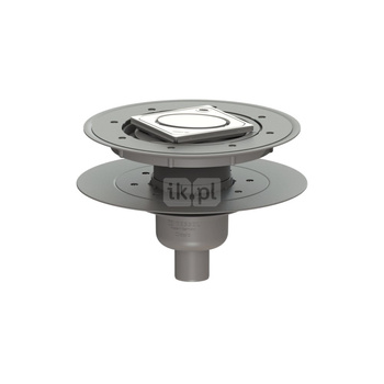 Wpust KESSEL Classic z 1 przyłączem DN 70, odpływ pionowy (zdejmowany), kratka 100x100mm stal nierdzewna