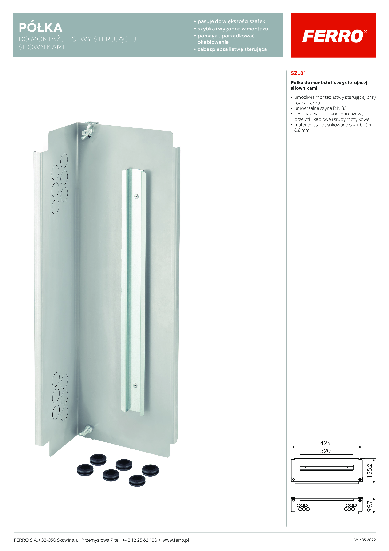 - Pozwala na szybki i łatwy montaż listwy sterującej tuż obok rozdzielacza, zabezpiecza ją oraz pomaga uporządkować okablowanie.