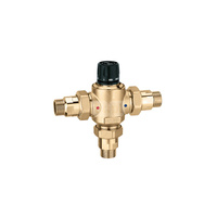 Regulowany termostatyczny zawór mieszający z zaworami zwrotnymi, filtrami na wlotach i złączkami zaciskowymi O 15 30-65 st. C