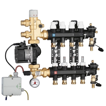Zespół regulacyjny – regulacja stałotemperaturowa. Wstępnie zmontowany w skrzynce inspekcyjnej. 4 wyjścia