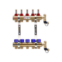 Rozdzielacz do ogrzewania podłogowego QIK BASIC II TN 5-obieg. mosiądz GW 1'' x GZ 3/4'' + przepływomierz