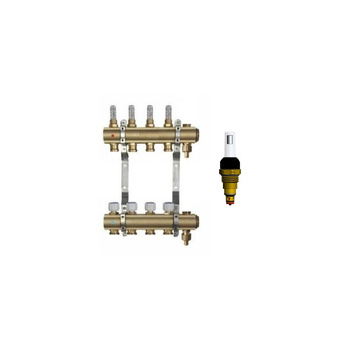 Rozdzielacz do ogrzewania podłogowego QIK MAGNET 4-obieg. mosiądz GW 1'' x GZ 3/4'' + przepływomierz