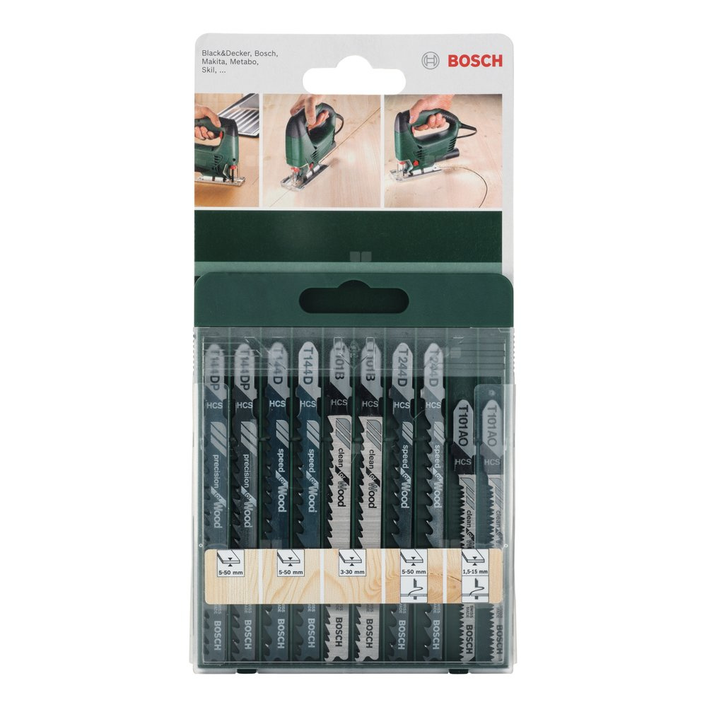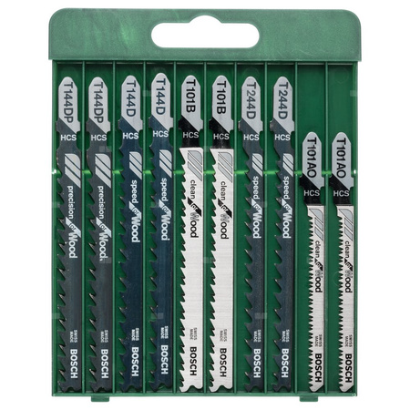 10-częściowy zestaw brzeszczotów do wyrzynarek, chwyt T T 144 D (2x), T 244 D (2x), T 101 B (2x), T 101 AO (2x), T 144 DP (2x)