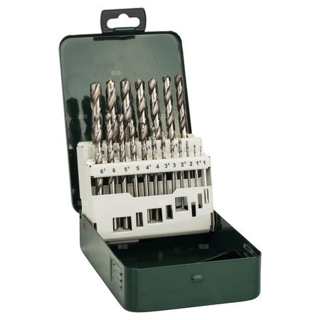 19-częściowy zestaw Wierteł do metalu HSS-G, DIN 338 1,0, 1,5, 2,0, 2,5, 3,0, 3,5, 4,0, 4,5, 5,0, 5,5, 6,0, 6,5, 7,0, 7,5, 8,0,