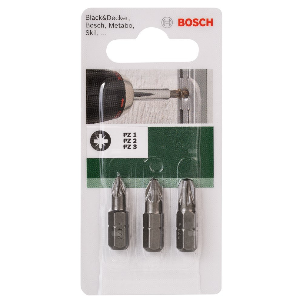 3-częściowy zestaw końcówek wkręcających do śrub z rowkiem krzyżowym Pozidriv (PZ) PZ1, PZ2, PZ3, 25 mm