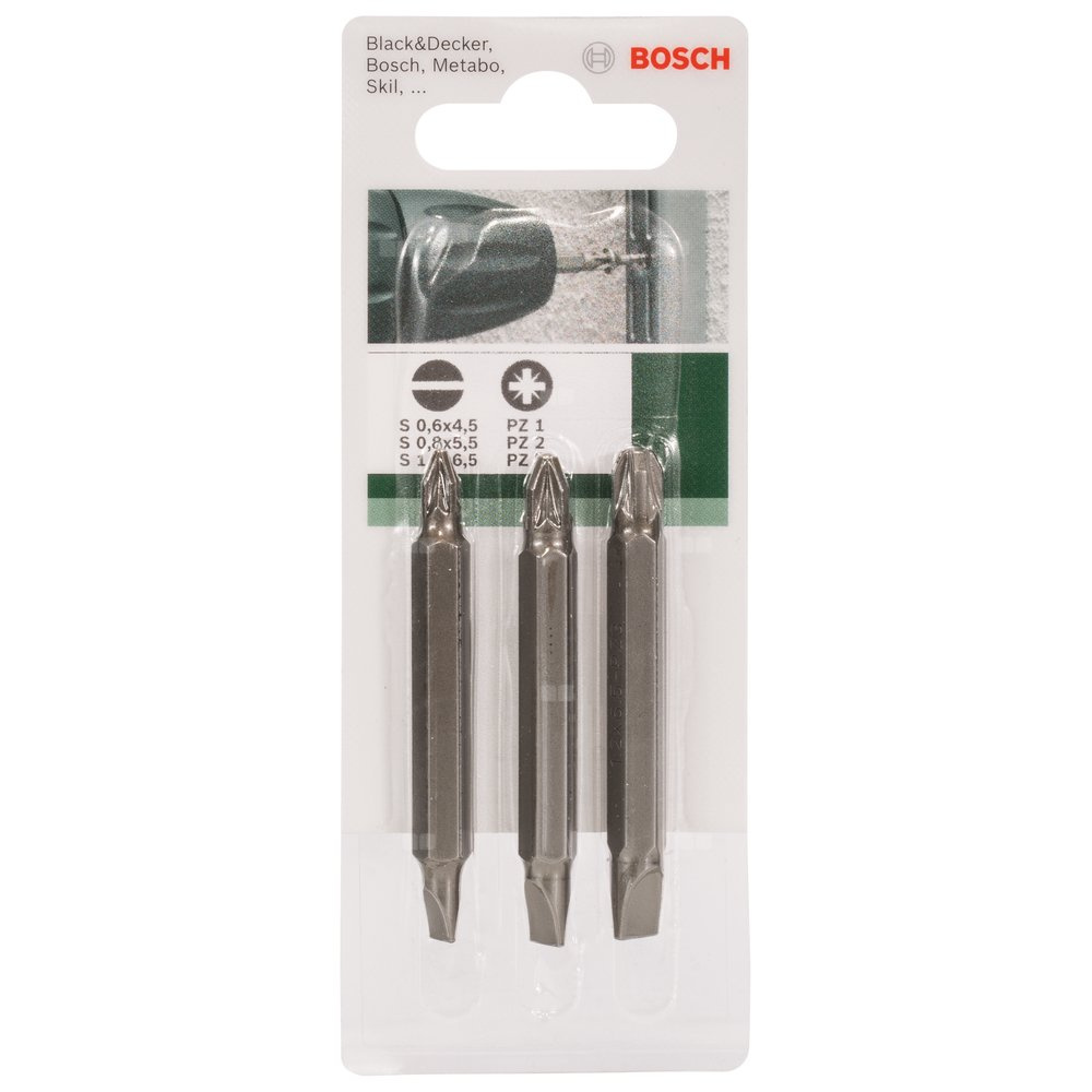 3-częściowy zestaw podwójnych końcówek wkręcających do śrub z rowkiem krzyżowym Pozidriv i do śrub rowkiem podłużnym (PZ, S) S0,