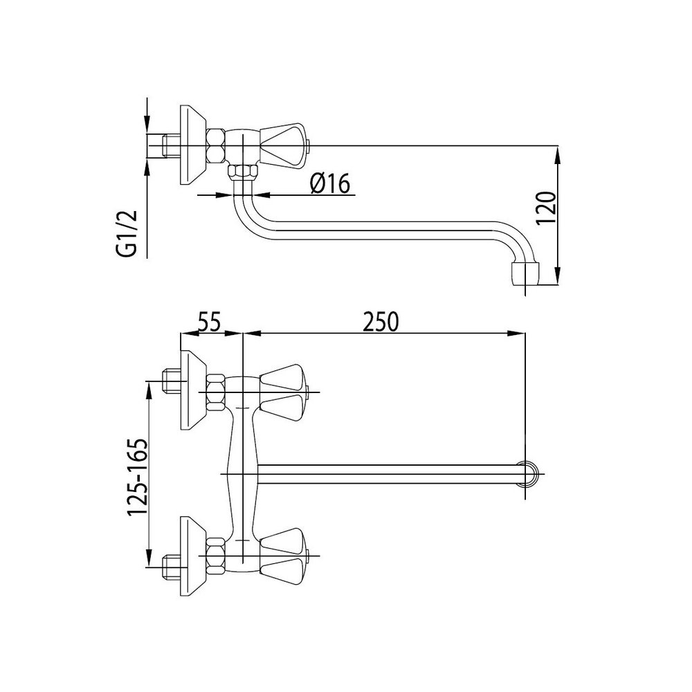 Bateria standard kuchenna ścienna z wylewką s16, l=250 mm, chro