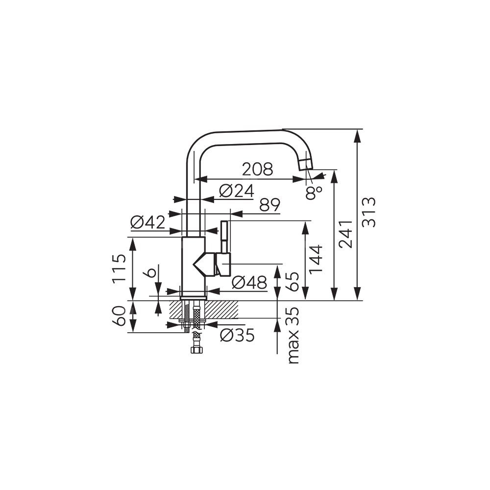Uniwersalny cylindryczny kształt to sprawdzony design pasujący do każdej aranżacji. Bateria wykonana jest ze stali nierdzewnej, dzięki temu jest bardziej odporna na zarysowania i domowe detergenty oraz jest łatwiejsza w utrzymaniu w czystości. Obrotowa wylewka baterii dodatkowo zwiększa jej funkcjonalność.