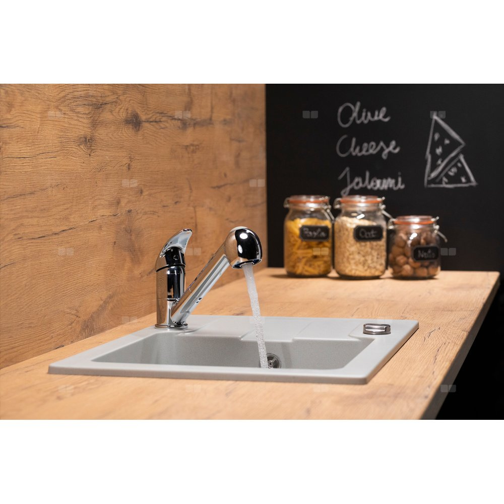 Bateria zlewozmywakowa stojąca KFA Armatura INDIRA, obrot. wylewka, kolor chrom, z wyciąganym natryskiem, mosiądz
