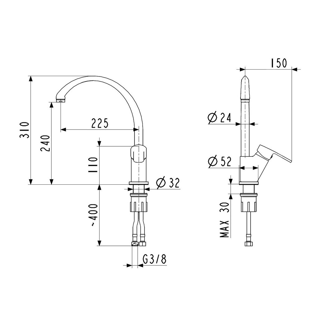 Bateria zlewozmywakowa stojąca KFA Armatura MOHIT, obrot. wylewka, uchwyt boczny - skośny, kolor chrom, mosiądz