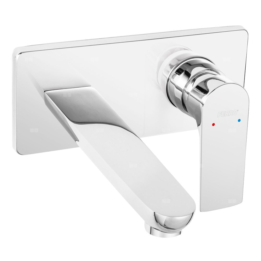 Bateria umywalkowa podtynkowa o ciekawym, prostokątnym kształcie. Idealnie pasuje do nowoczesnych wnętrz.