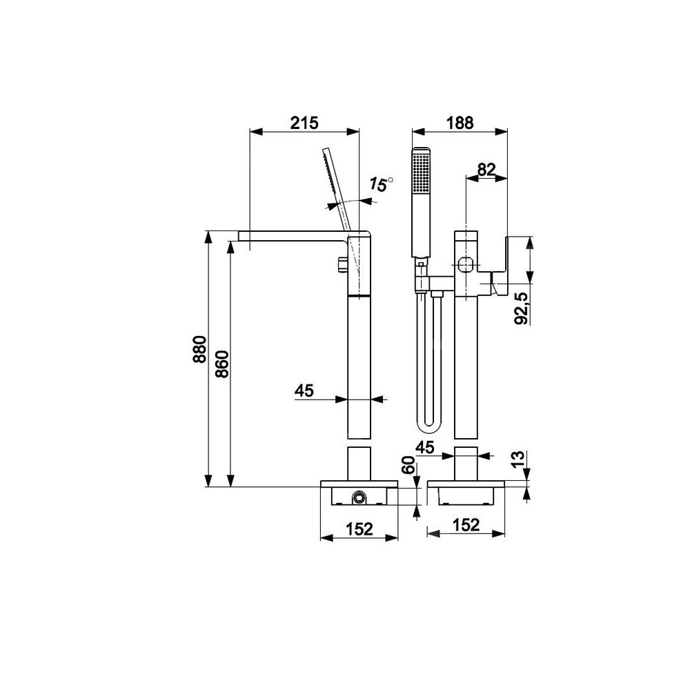 - Przepływ wody [l/min]: rączka natrysku 9/ wylewka 17