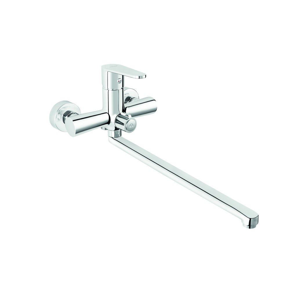 Bateria umywalkowo-wannowa z funkcjonalną, ruchomą wylewką. Uniwersalne przyłącze 1/2" umożliwia zastosowanie dowolnego zestawu natryskowego. Ceramiczny, ergonomiczny przełącznik wylewka/natrysk zapewnia łatwość w obsłudze.