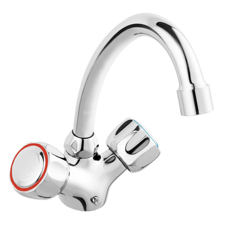 Bateria umywalkowa stojąca, dwuuchwytowa wyposażona w ruchomą wylewkę, która zapewni zwiększoną funkcjonalność oraz łatwość obsługi podczas użytkowania.