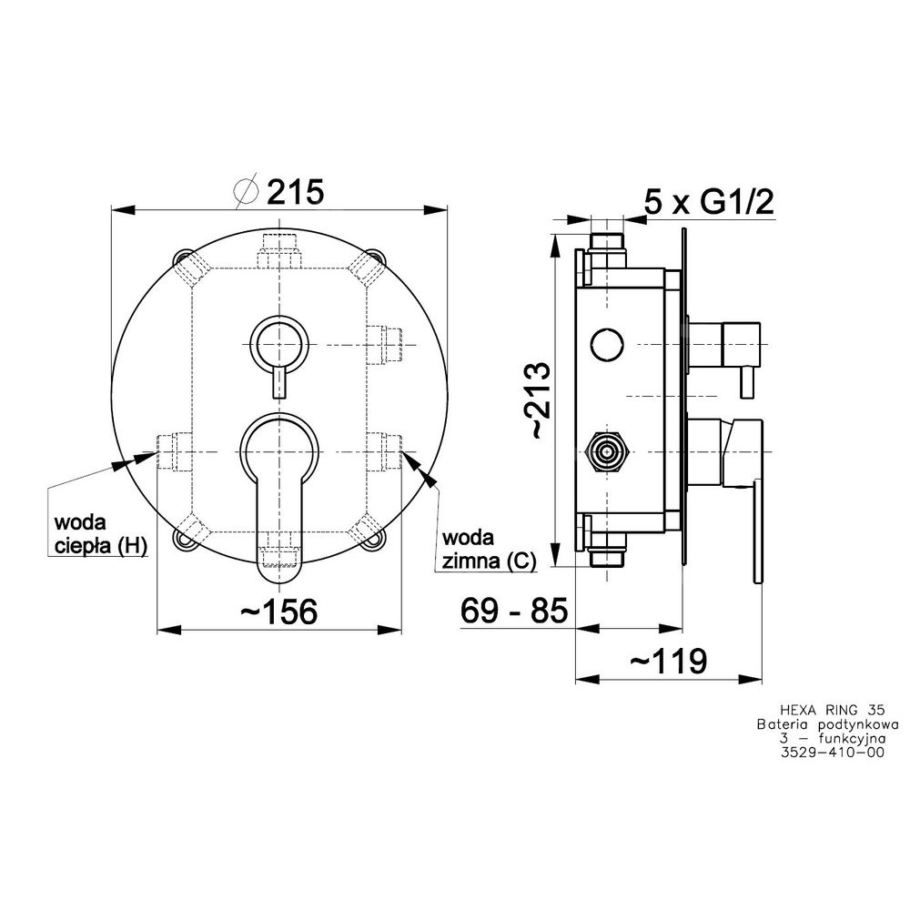 Bateria hexa ring 35 wannowo-Natryskowa podtynkowa 3-Drożna chrom