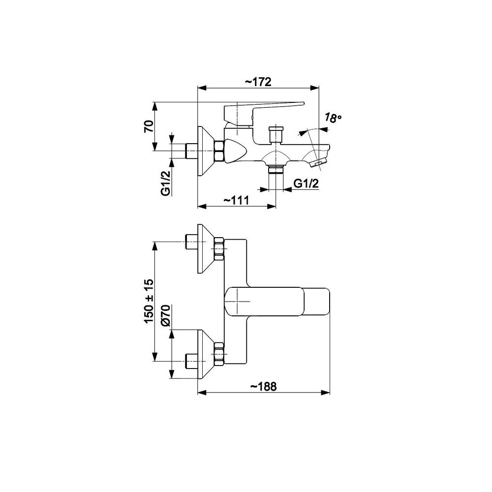 - Rozstaw przyłączy [mm]: 150 +/ 15