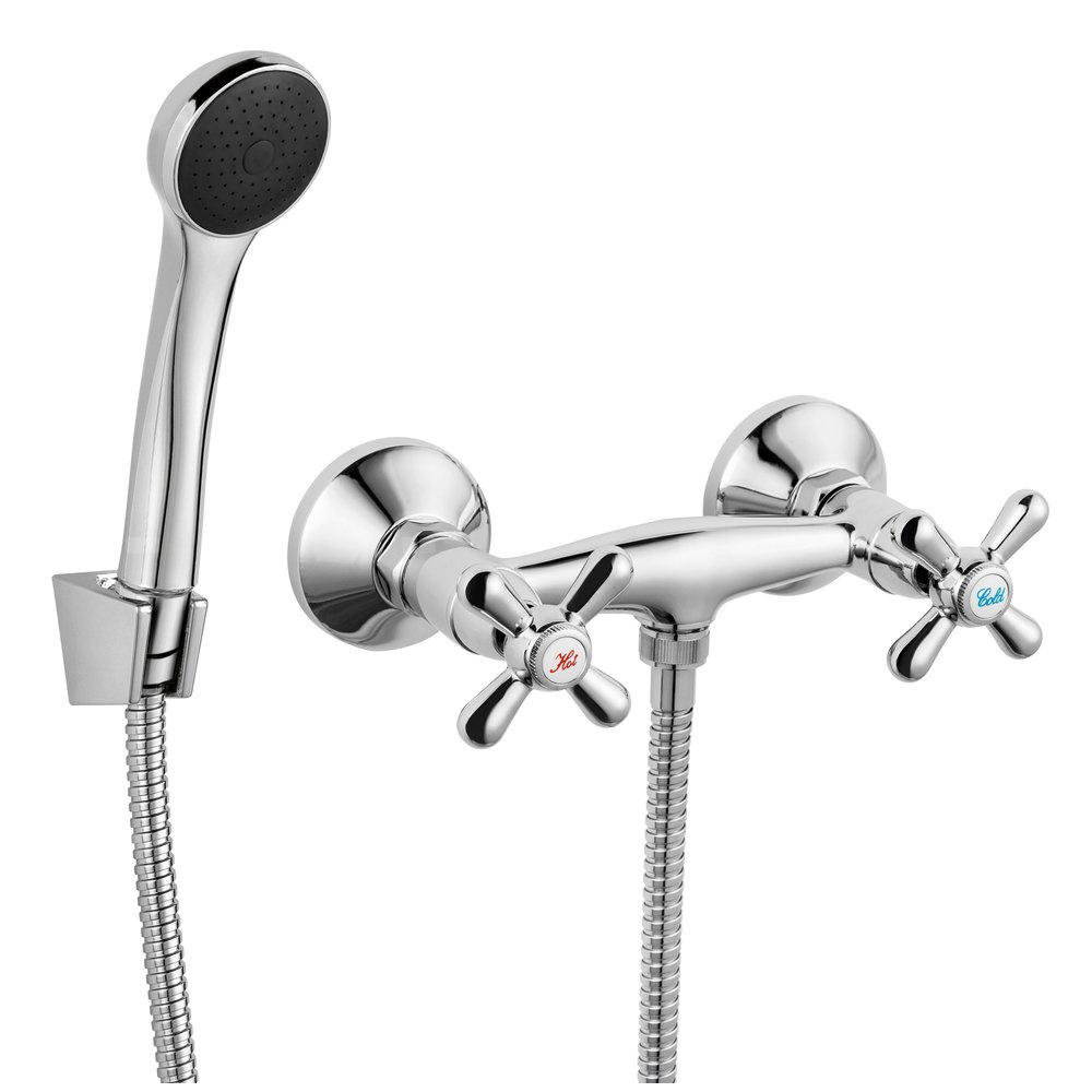 Bateria natryskowa w unikalnym dizajnie retro, idealnie pasująca do łazienek w stylu vintage. W komplecie z punktowym zestawem natryskowym.