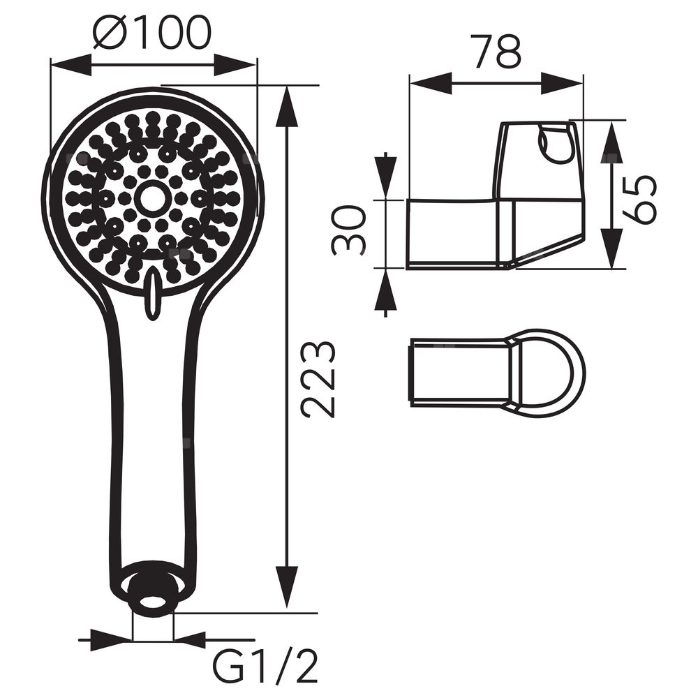 Punktowy zestaw natryskowy z 5-funkcyjną rączką z możliwością wyboru typu strumienia. Funkcjonalny uchwyt natrysku z możliwością regulacji kąta położenia rączki prysznicowej. System Easy Clean ułatwi usuwanie osadu wapiennego z sitka rączki.