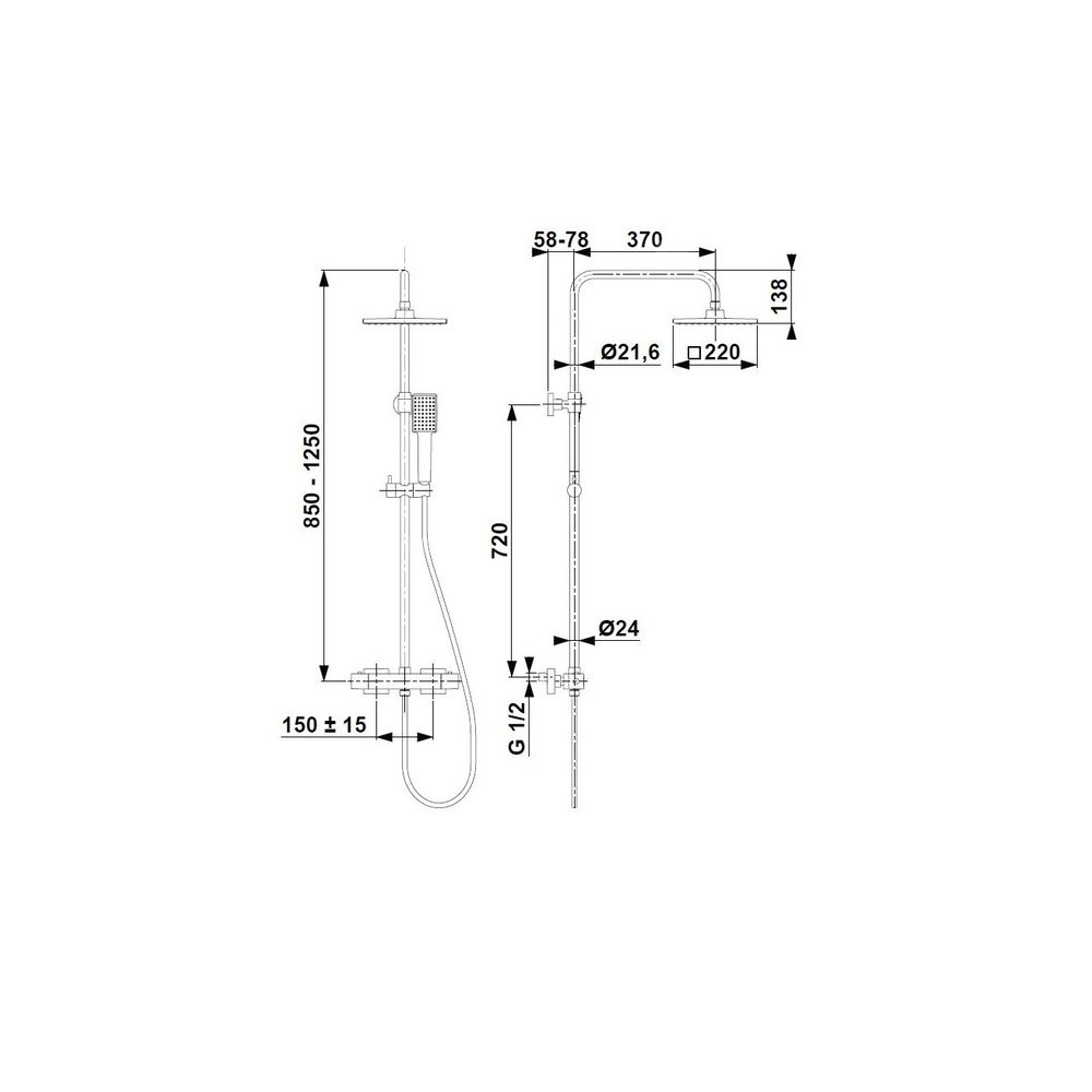 Deszczownia logon z baterią termostatyczną natryskową ścienną chrom