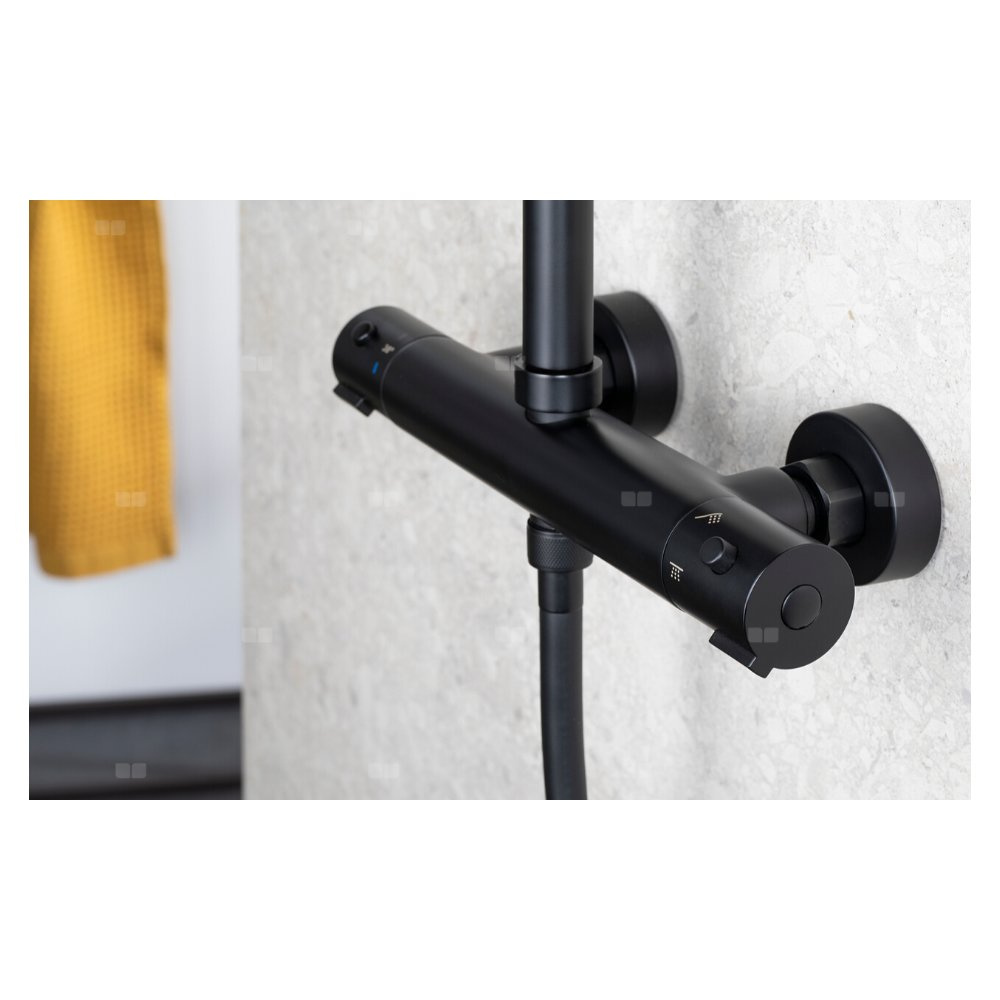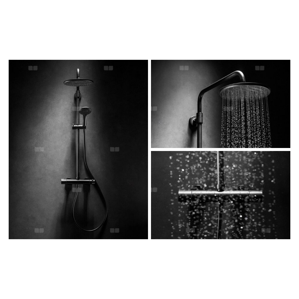 Deszczownia moza z baterią termostatyczną natryskową ścienną black