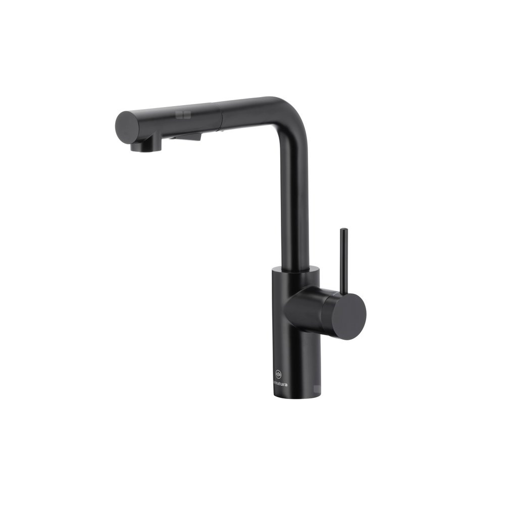 Bateria zlewozmywakowa stojąca KFA Armatura DUERO BASIC, kolor czarny, wyciągana wylewka i obrotowa wylewka 2 funkcyjna, obrotowy górny, wys. 301 mm
