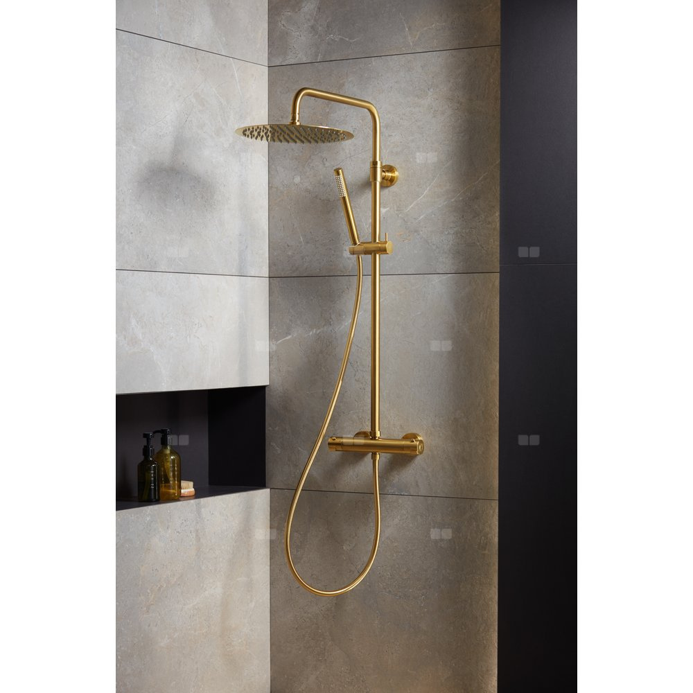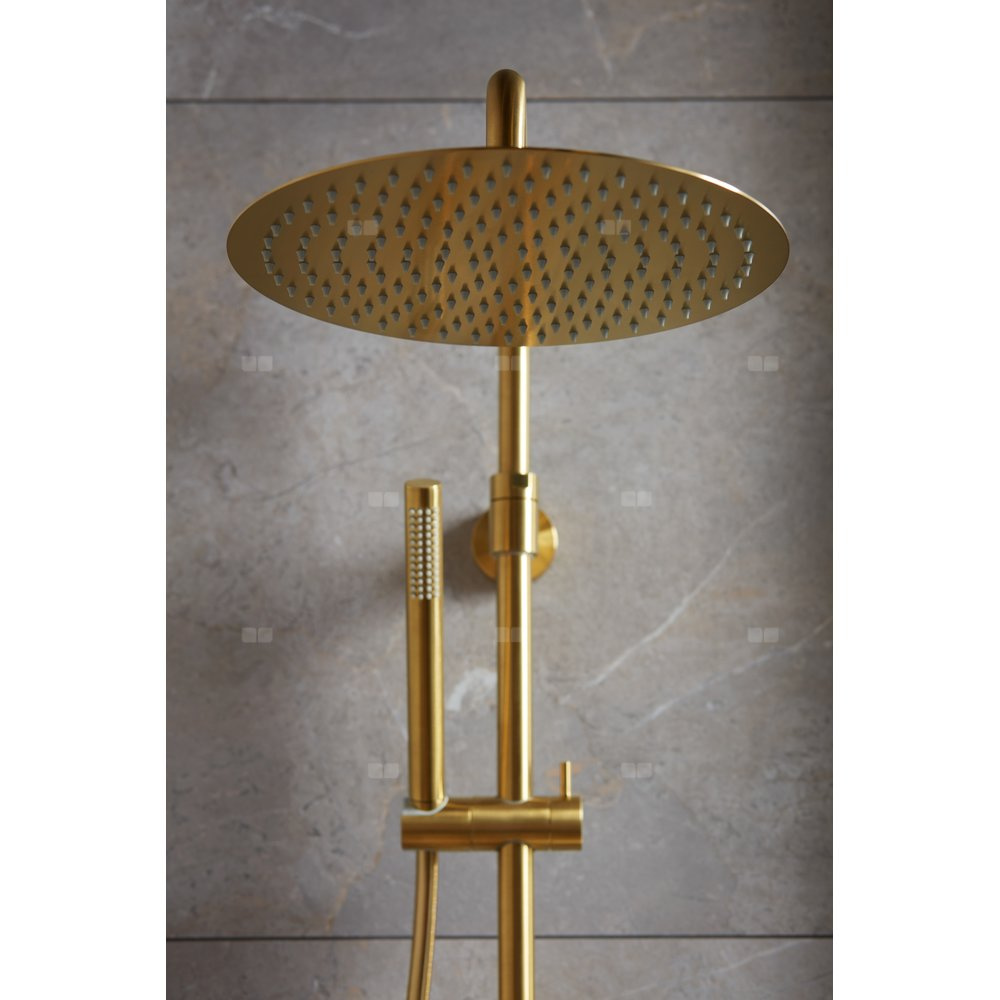 Deszczownia moza premium z baterią termostatyczną natryskową ścienną gold