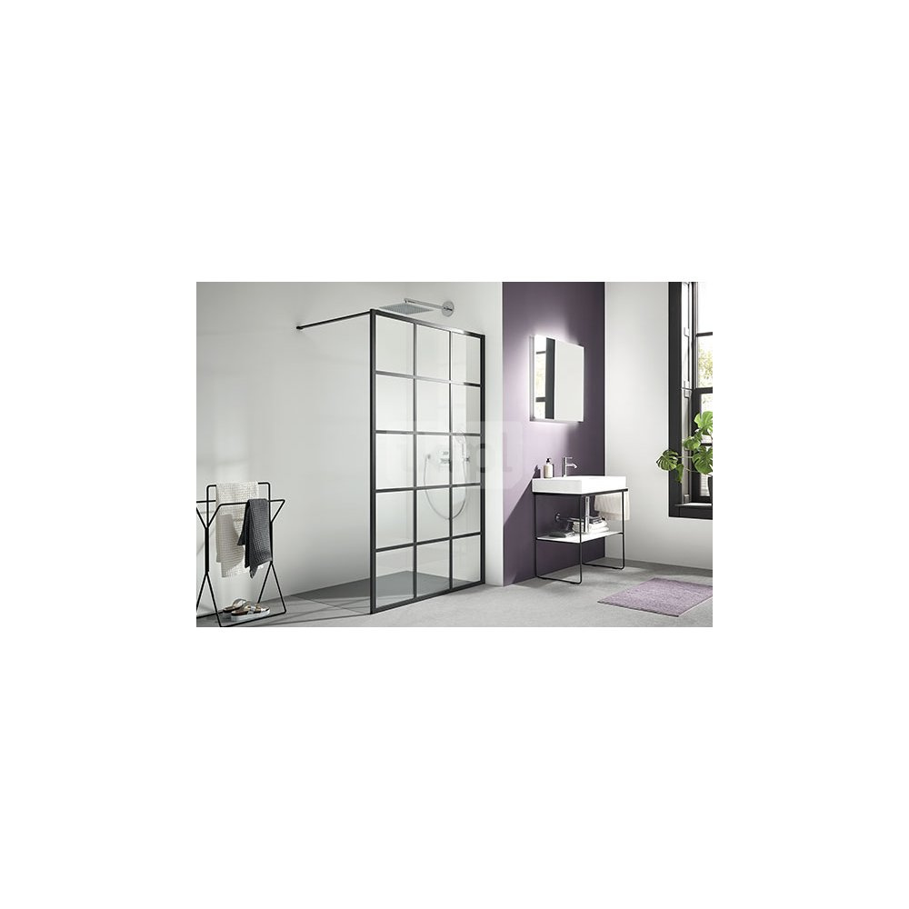 Czarne profile WALK-IN XD są cienkie i podkreślają kontrast między jasnymi a ciemnymi powierzchniami, dzięki czemu pomieszczenia wydają się bardziej uporządkowane i lekkie. Do wyboru są zarówno profile, jak i printy z takim samym wzorem, jak profile. W przypadku profili, zastosowane są tylko od zewnętrznej strony kabiny, dzięki czemu powierzchnia szkła w środku jest gładka i łatwa do czyszczenia.