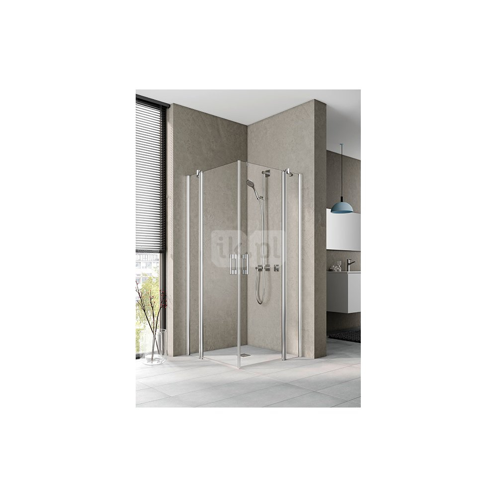 Kermi wejście narożne PEGA EPL 0900x 2000, połowa lewa, kolor srebro wysoki połysk, szkło ESG 6 mm przezroczyste