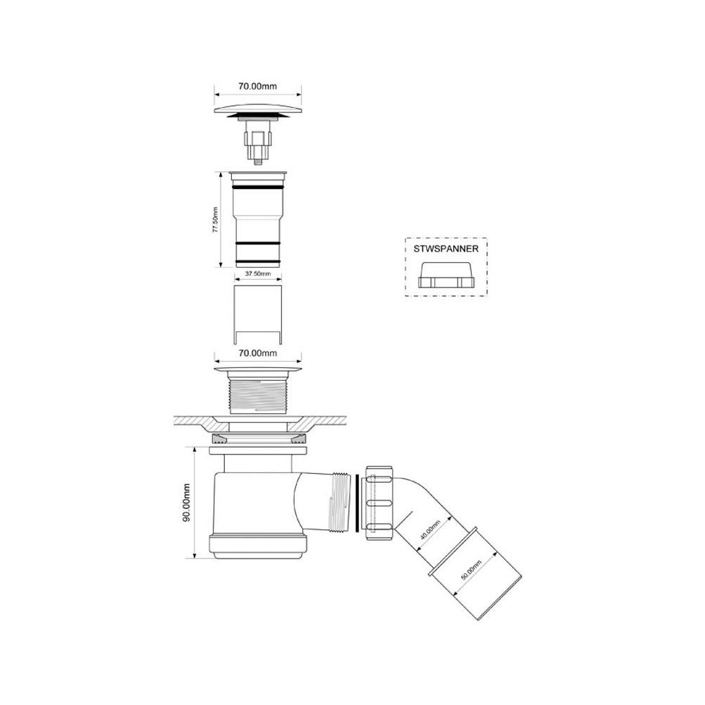 Syfon brodzikowy "klik-klak" z odejściem 40/50mm czyszczony od góry ,pokrywa mosiądz ANTYCZNY BRĄZ 70mm