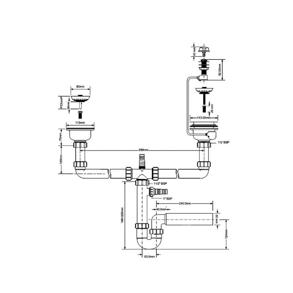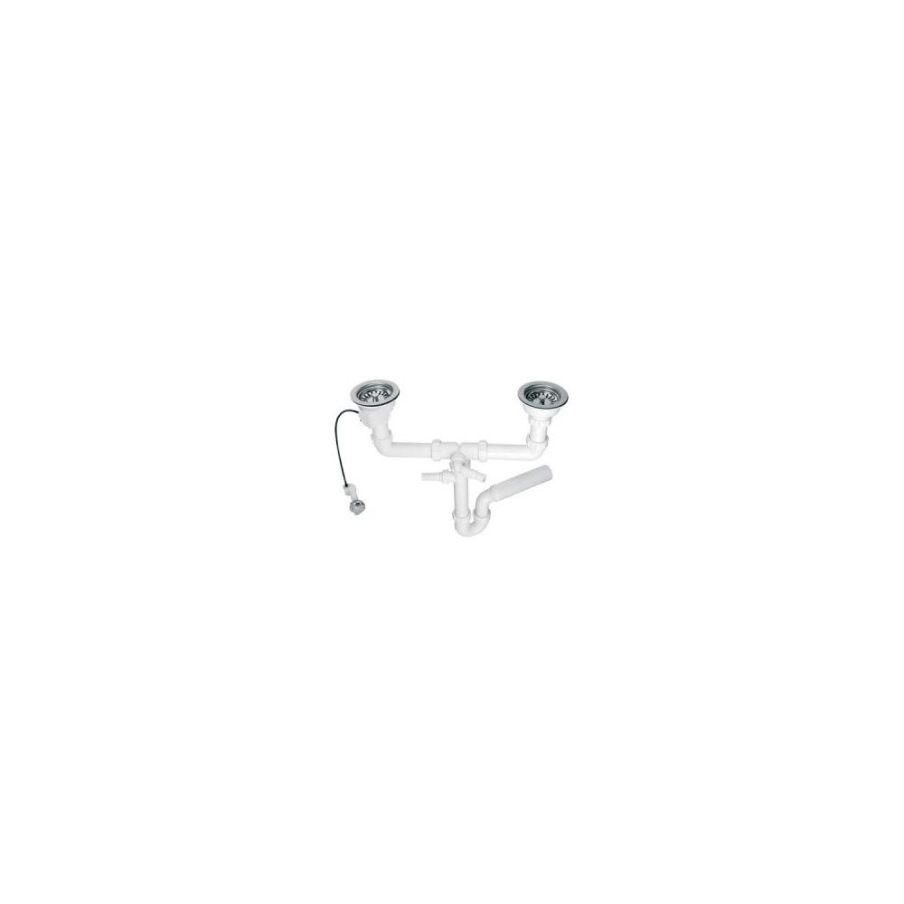 Syfon zlewozmywakowy rurowy podwójny 3,5"X50mm z podłączeniem pralki lub zmywarki, spust z mech.automatycznym