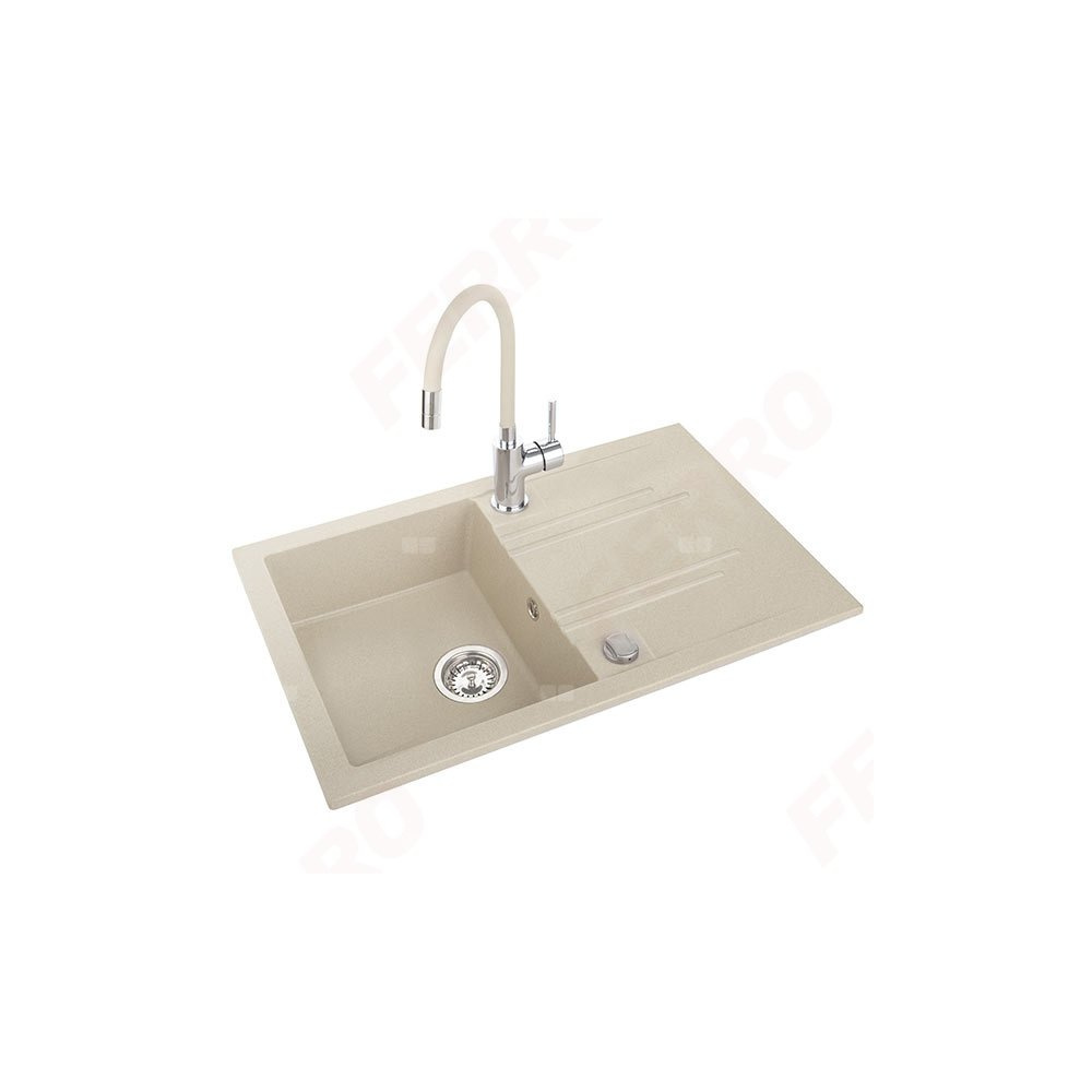 Zestaw składający się z kolorystycznie dobranej baterii i zlewozmywaka, w komplecie z syfonem. Zlewozmywak jest odwracalny co daje nam możliwość dowolnego montażu.
