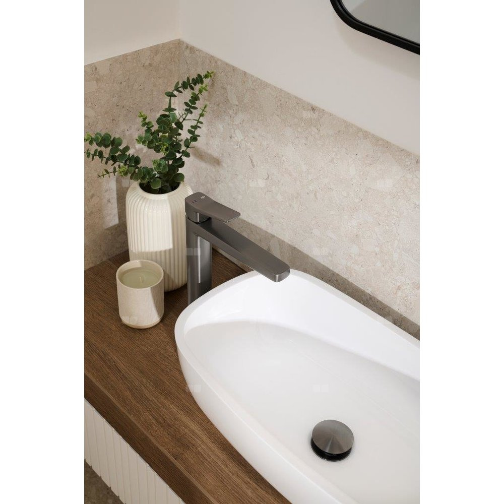 Bateria malaga, umywalkowa, nablatowa z korkiem klik-Klak, pvd gun metal grey