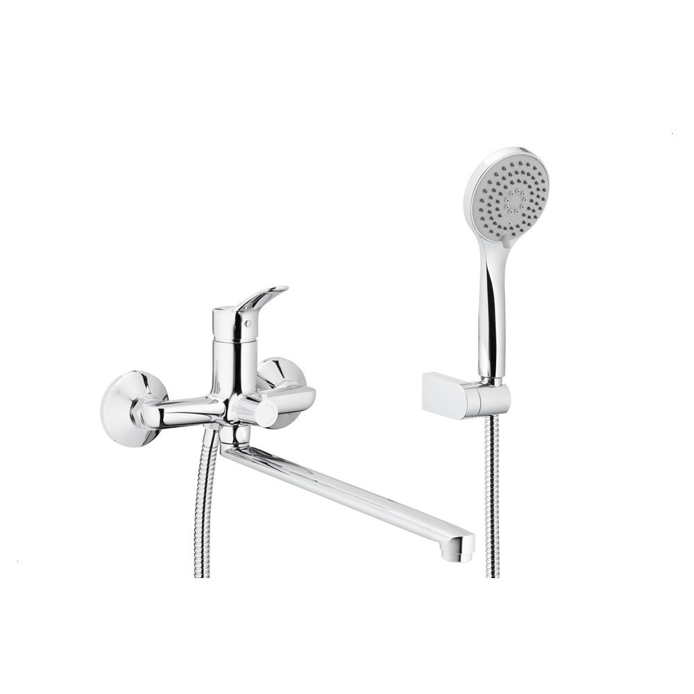 Bateria morris umywalkowo-Wannowa, ścienna z wylotem 350 mm i z zestawem natryskowym punktowym, chrom