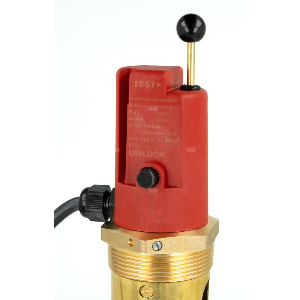 Elektromechaniczny czujnik niskiego poziomu wody w kotle WMS z rurą ochronną wkręcaną w kocioł i blokadą