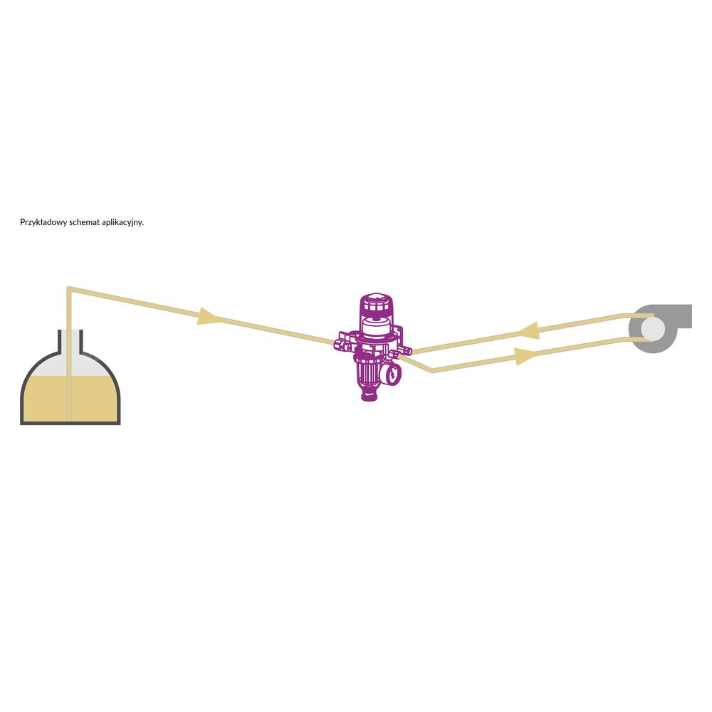 Zawór zwrotny zabezpiecza przed przepływami zwrotnymi w kierunku zbiornika.