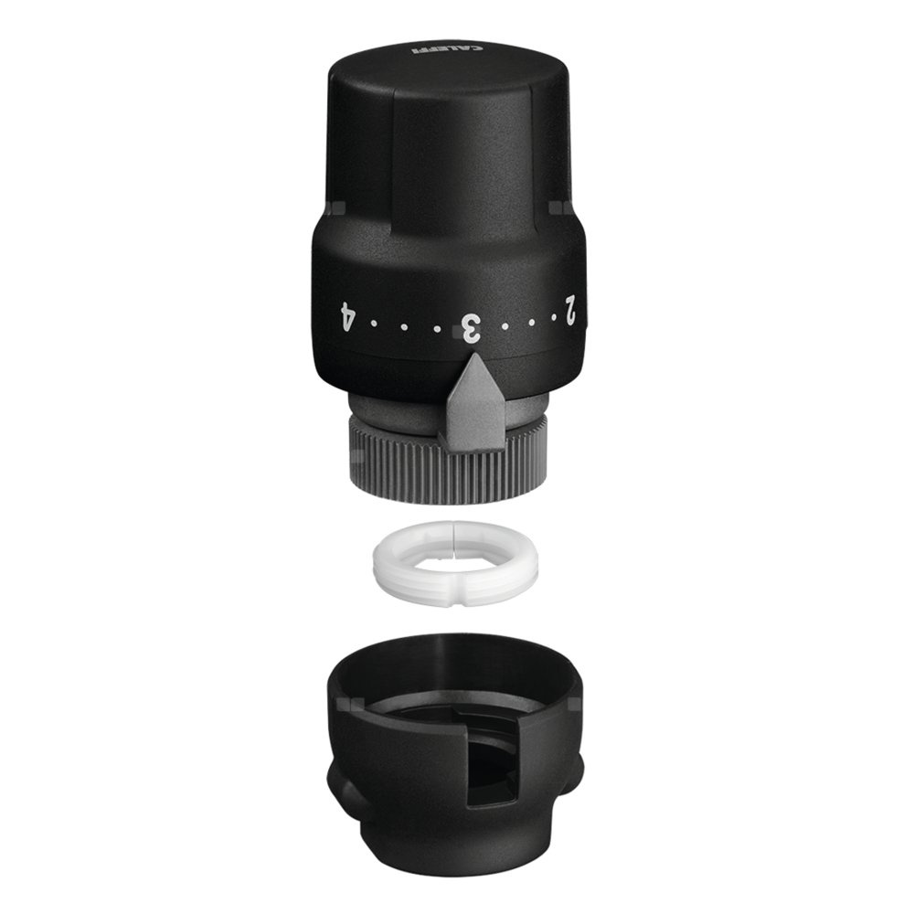 Głowica termostatyczna do armatury grzejnikowej dekoracyjnej. Z wbudowanym czujnikiem, elementem zabezpieczającym przed zmianą nastaw i specjalnym kluczem Wykończenie: czarne