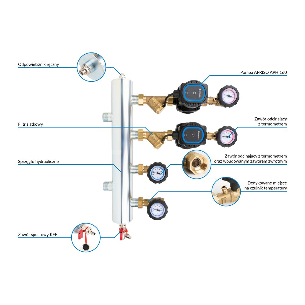 Pozwala na przyłączenie dwóch obiegów grzewczych/chłodzących.
