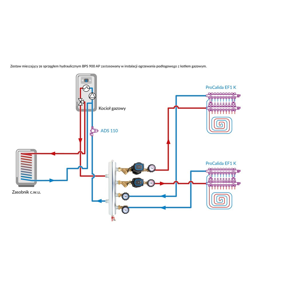 Stosowany w instalacjach grzewczych i chłodzących.Montowany na ścianie między źródłem a instalacją.