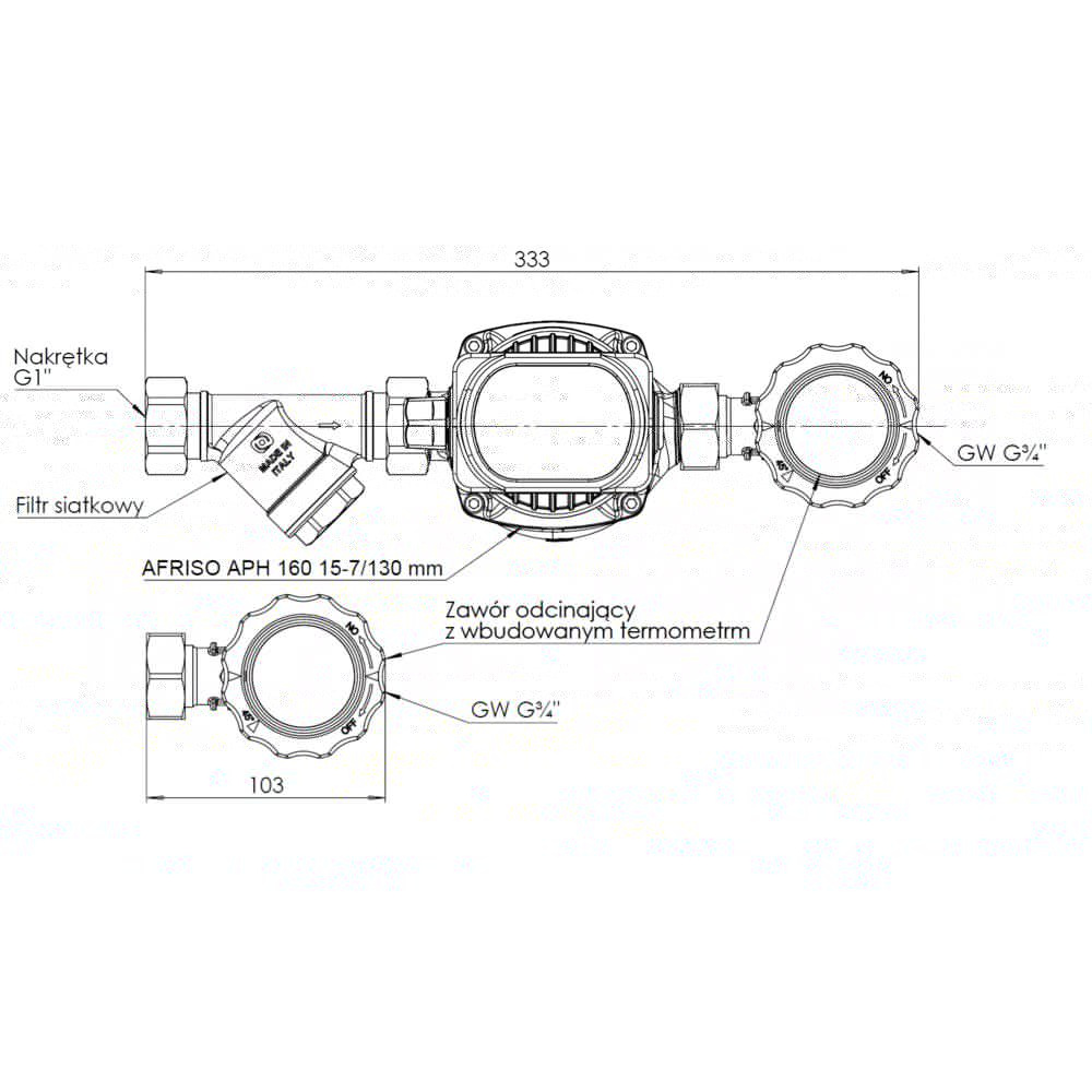 Grupa pompowa AFRISO BPS 990 AP nakrętka x GW 1'' x 3/4'', z pompą obiegową AFRISO APH 160 15-7/130 mm