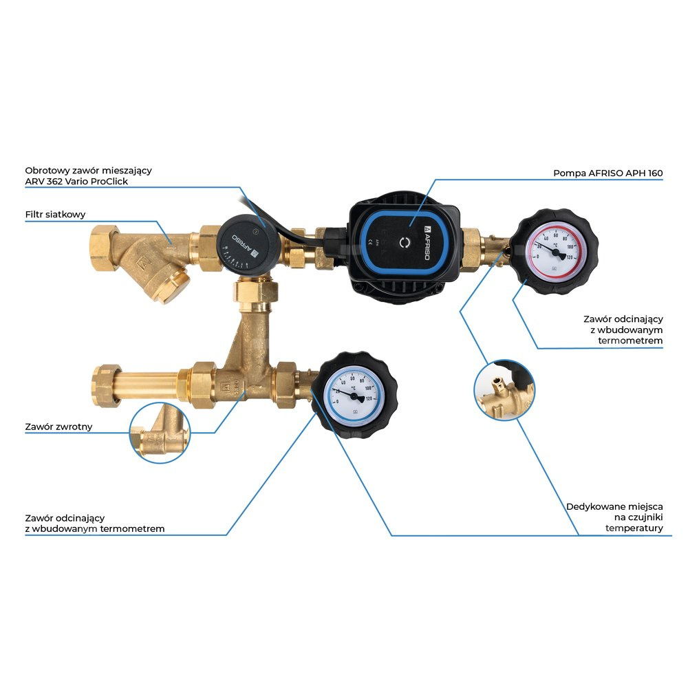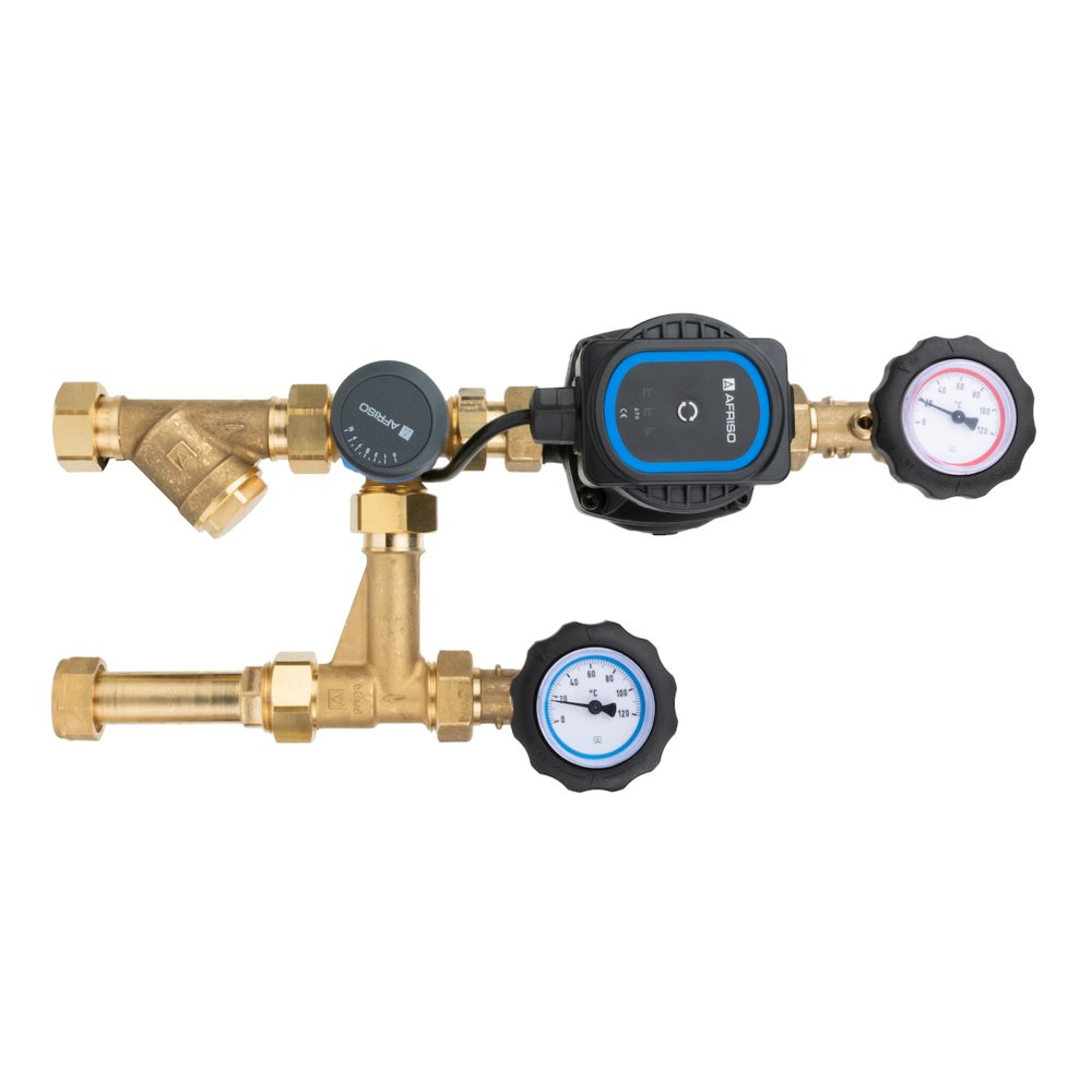 Grupa pompowa AFRISO BPS 996 AP nakrętka x GW 1'' x 3/4'', z zaworem mieszającym, z pompą obiegową AFRISO APH 160 15-7/130 mm