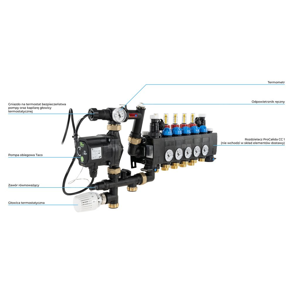 Stosowany w instalacjach grzewczych i chłodzących.Montowany między źródłem ciepła / chłodu a rozdzielaczem ProCalida CC 1.