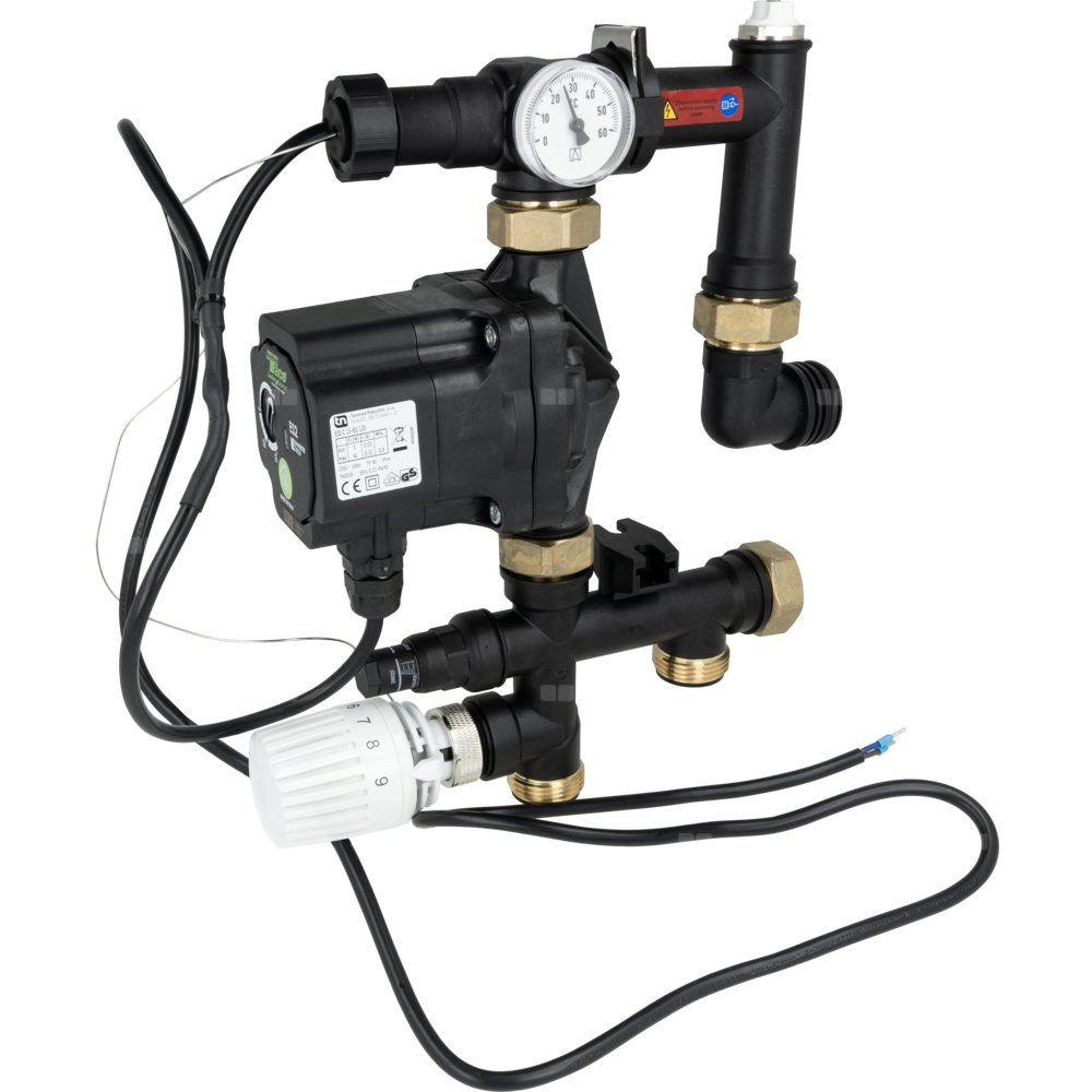 Termostat bezpieczeństwa pompy chroni instalację płaszczyznową przed uszkodzeniem na skutek zbyt wysokiej temperatury medium.