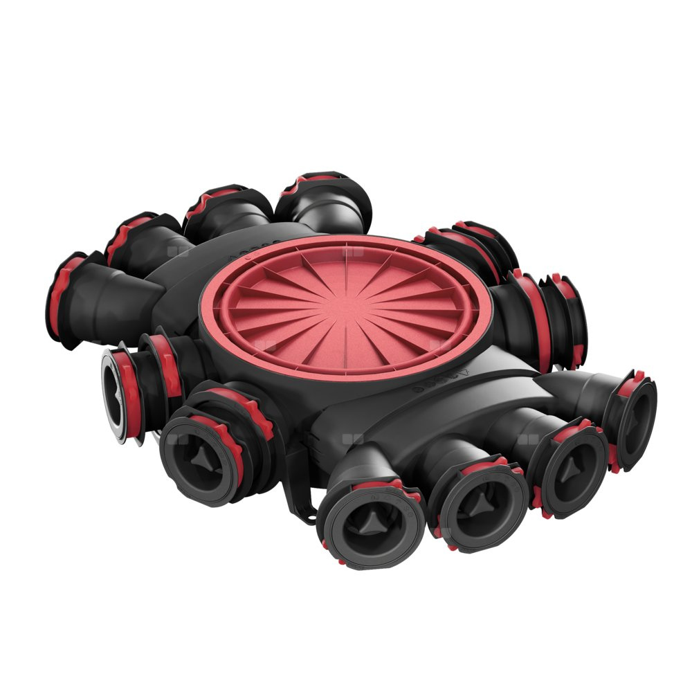* 12 przyłączy w podstawowej konfiguracji z uszczelkami i pierścieniami w technologii OneClick® pozwalającymi na szybki i wygodny montaż rur wentylacyjnych.