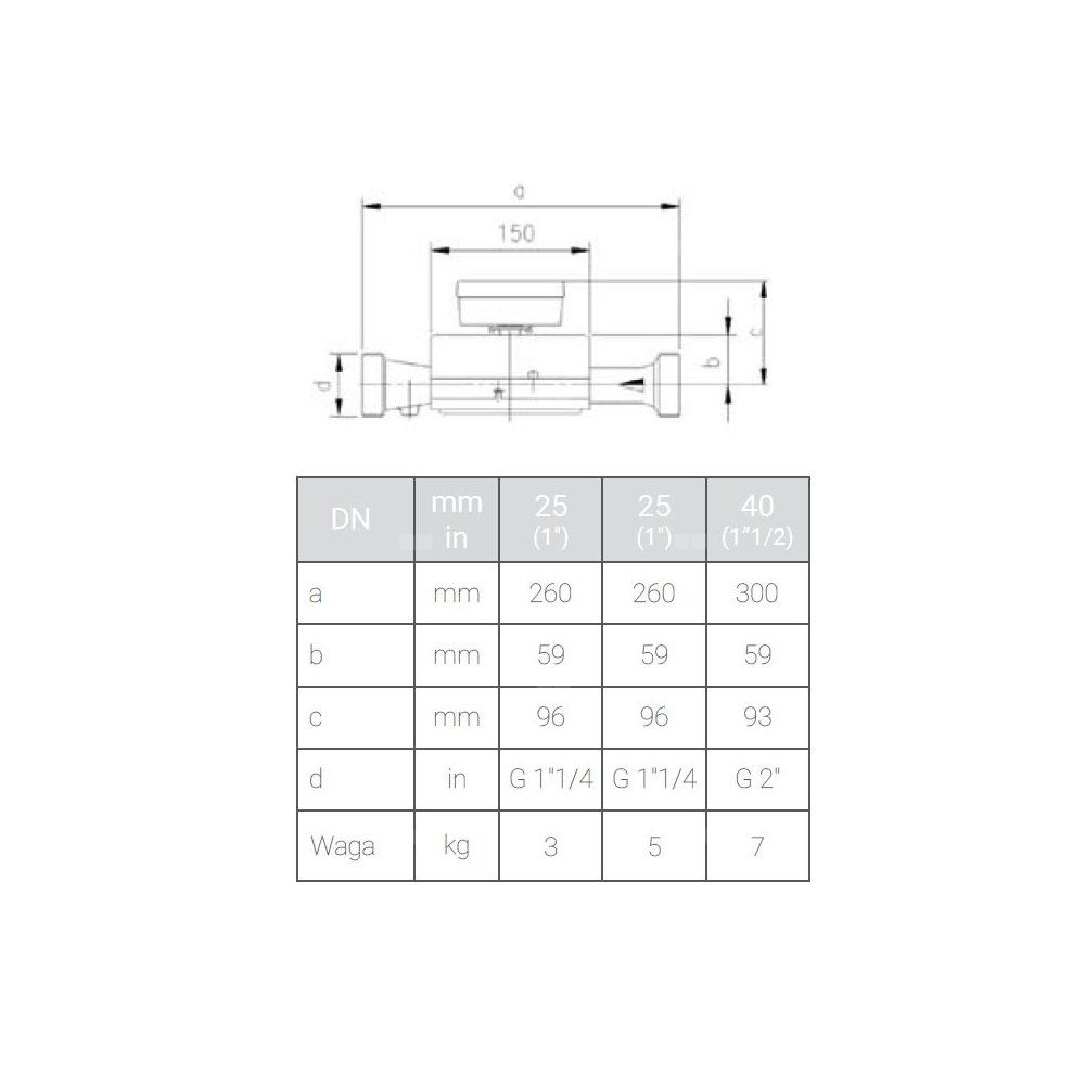 Model HYDROSONIS UP 1'' QN-3,5 m3/h DN 25 P lub Z RADIO