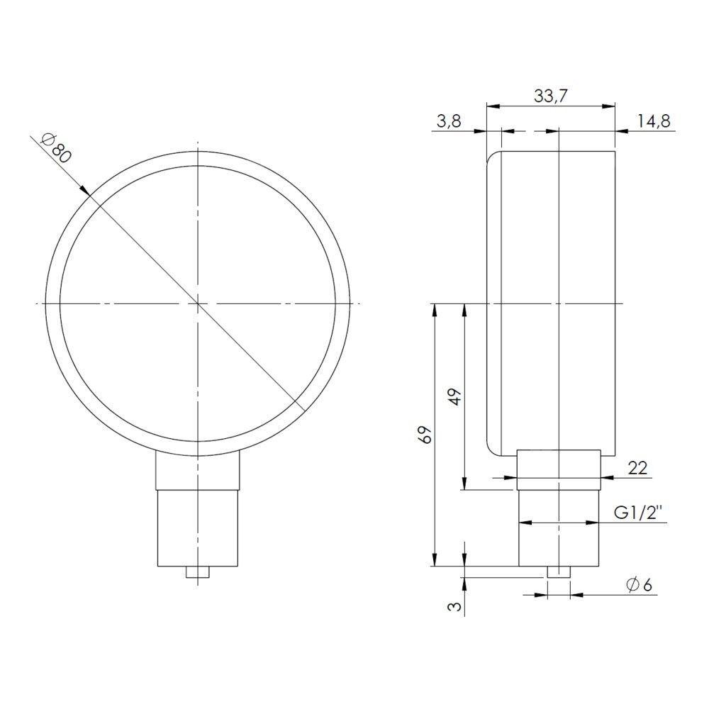 Przeznaczony do pomiaru ciśnień gazów suchych, które nie działają niszcząco na stopy miedzi.
