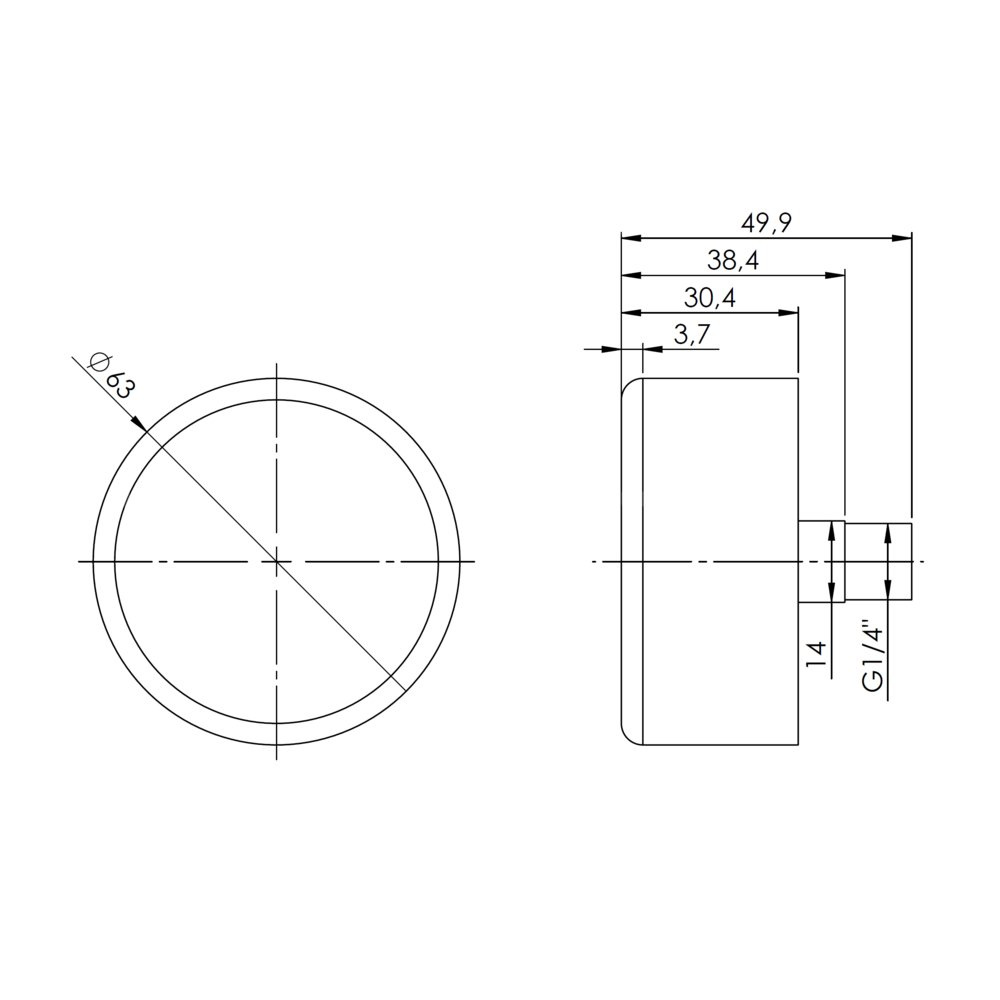 Przyrząd do zamkniętych instalacji grzewczych o Pmax 3 bar.Zielony obszar na tarczy wskazuje optymalny zakres ciśnienia.