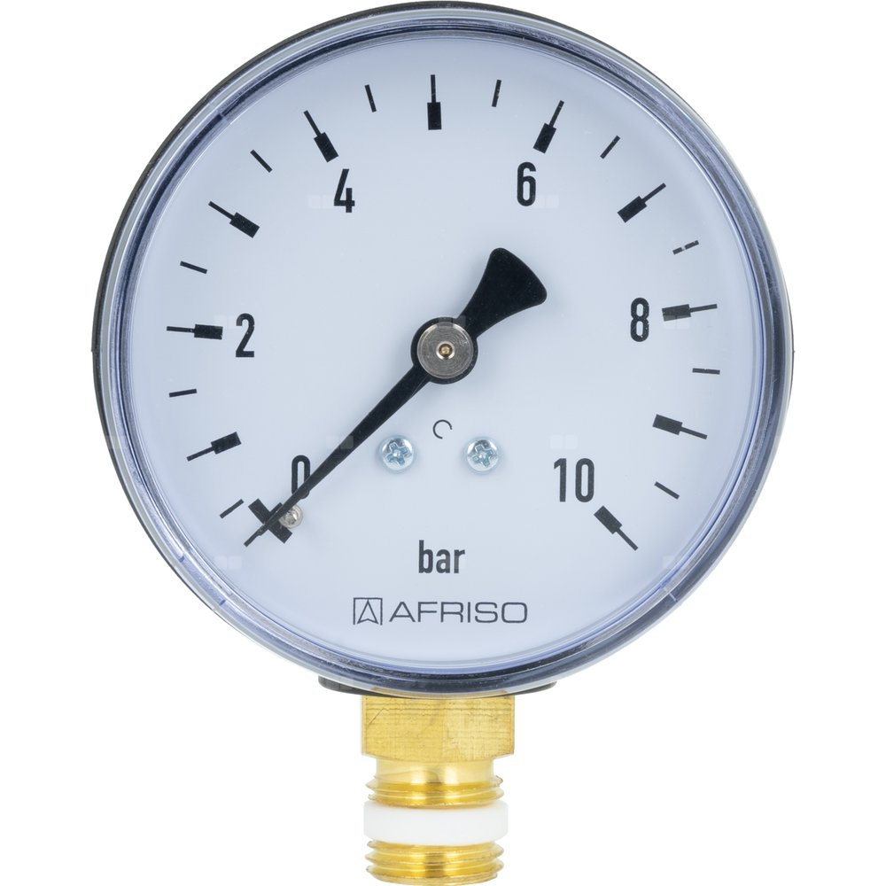 Manometr z rurką Bourdona AFRISO RF grzewczy 0/10 bar G1/4B radialne fi 63 mm, kl. 2.5%