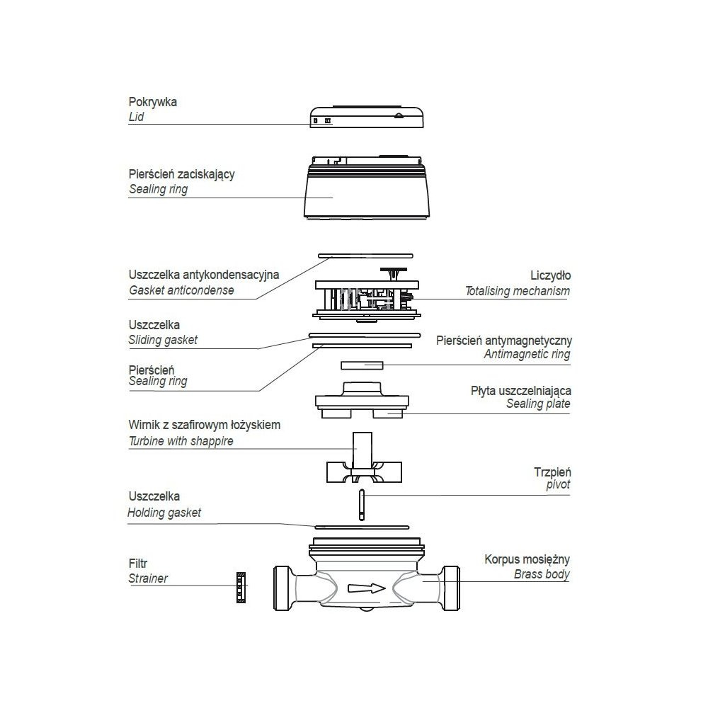 Wodomierz jednostrumieniowy suchobieżny antymagnetyczny, typu GSD8-I DN 15 Q3=2,5 m3/h R100/50, Tmax: 90st.C, L=110 mm