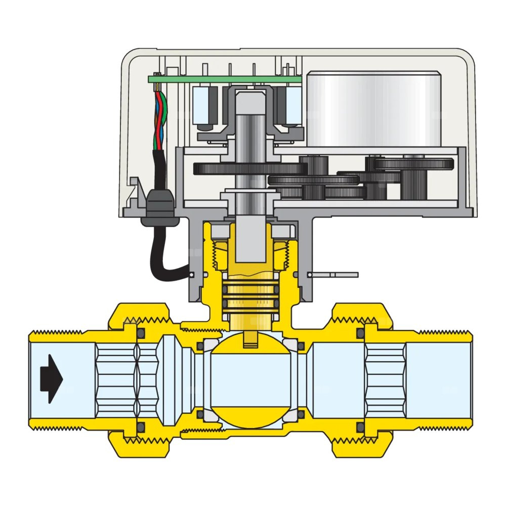 Dwudrożny, zawór kulowy z napędem Z mikroprzełącznikiem pomocniczym Z siłownikiem ze sterowaniem 3-punktowym Przyłącze: G 1/2" A (ISO 228-1) GZ. Maksymalne ciśnienie pracy: 10 bar. Zakres temperatury medium: -5–110 °C. Zakres temperatury otoczenia: 0–55 °C. Zasilanie elektryczne: 230 V (AC). Pobór mocy: 4 VA. Stopień ochrony: IP 44 (w pozycji pionowej), IP 40 (w pozycji poziomej). Długość przewodu zasilająego: 1 m. Styk mikroprzełącznika pomocniczego (230 V): 0,8 A. △p max.: 10 bar. Kv: 11,1 m³/h. Czas zadziałania: 40 s (obrót 90°).