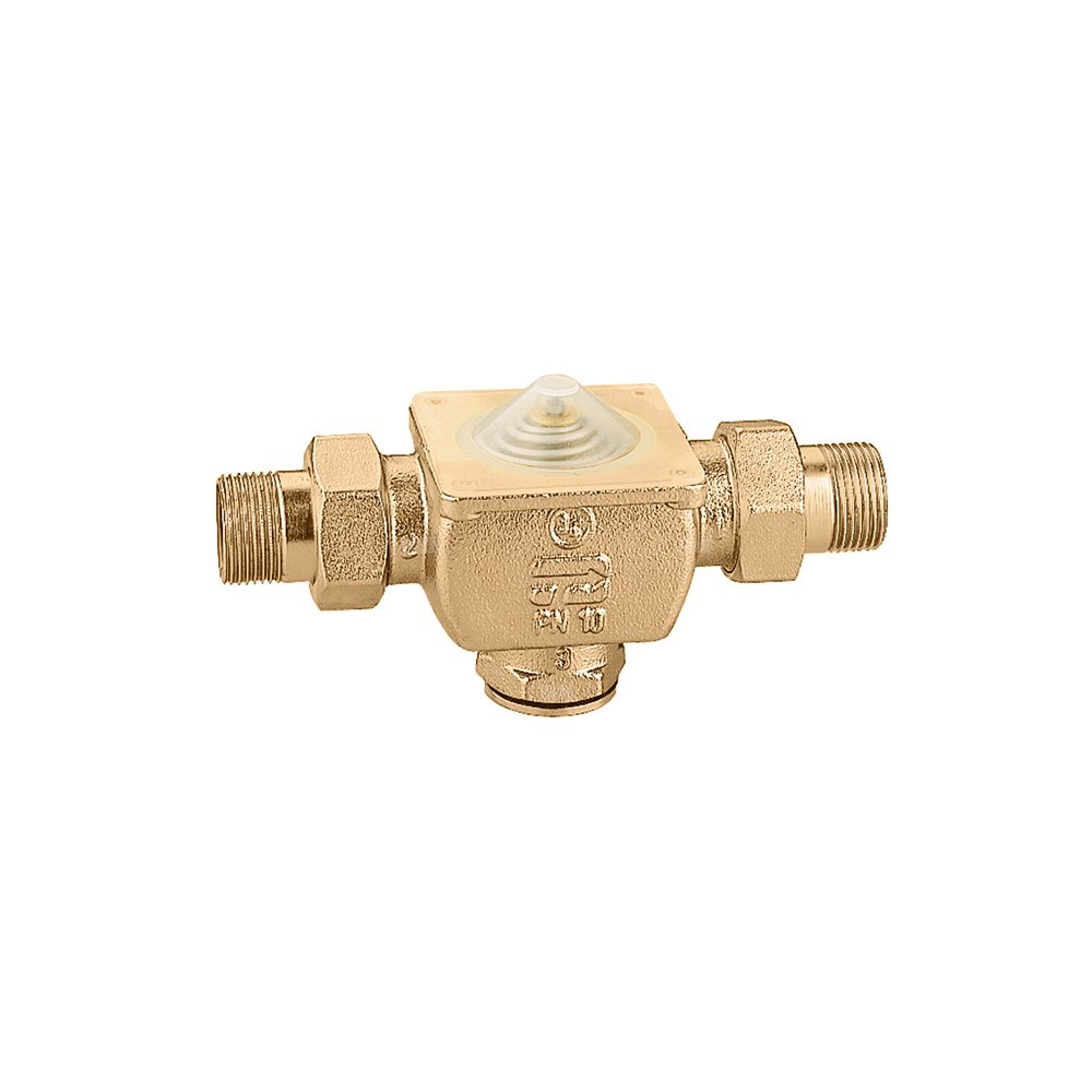 Dwudrożny zawór strefowy, tłokowy Przyłącze: G 1/2" A (ISO 228-1) GZ. Maksymalne ciśnienie pracy: 10 bar. Zakres temperatury medium: -5–95 °C. △p max.: 1 bar. Kv przelot: 5,10 m³/h.